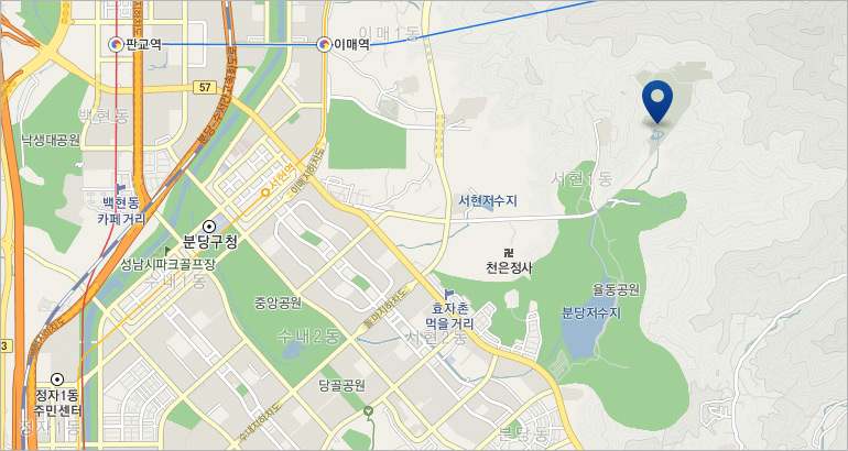 분당 서현역 이매사거리 → [오포, 새마을연수원, 국군수도병원] 방면 → 새마을연수원 내 위치